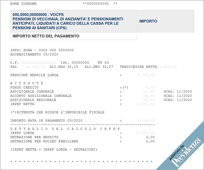 Le note dell’Inps sul cedolino della pensione di marzo 2020